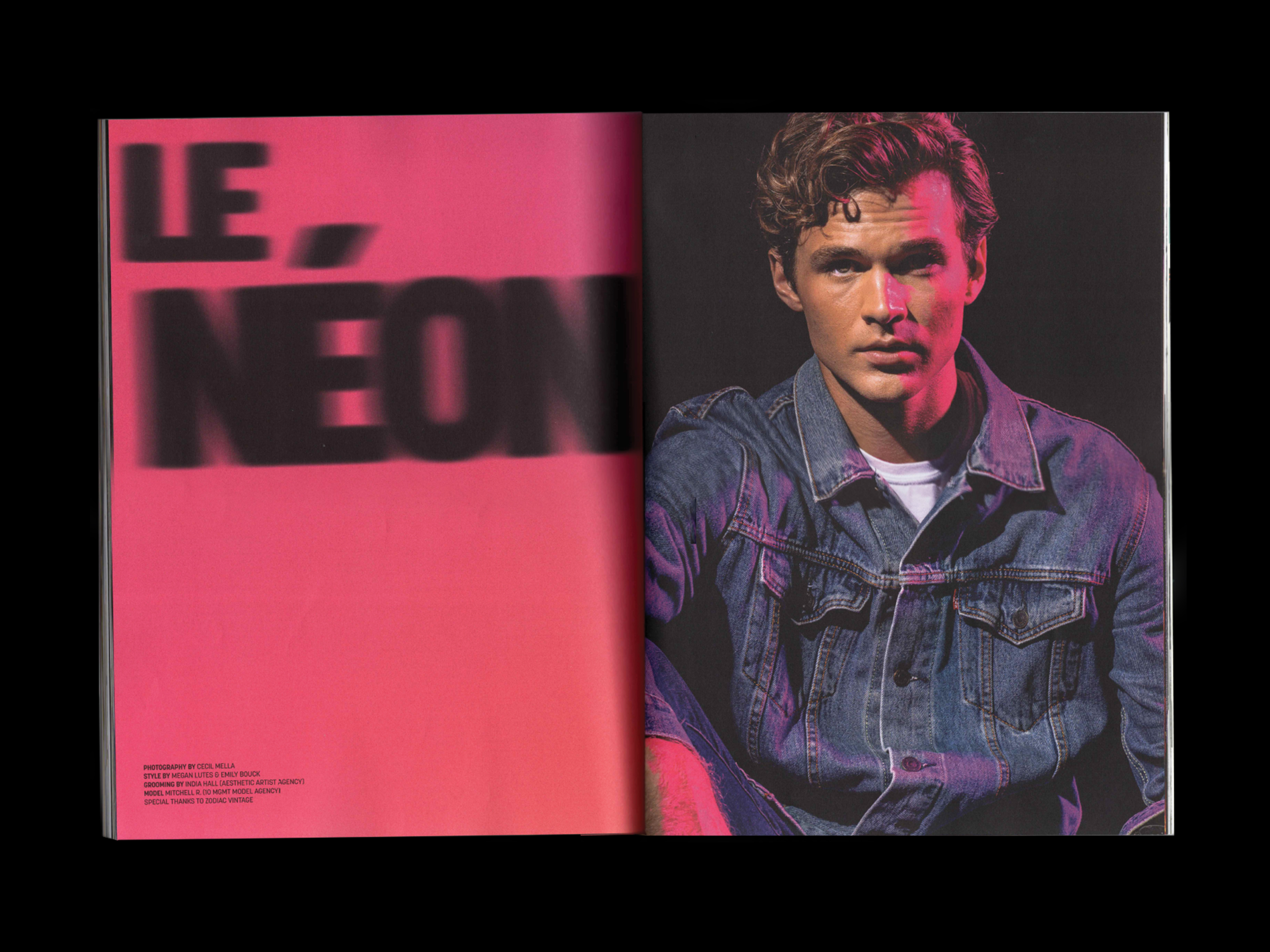Inspired by the cinematic and vibrant high-contrast lighting of the feature’s photography, I created type with an out-of-focus blur. Layout design featured in